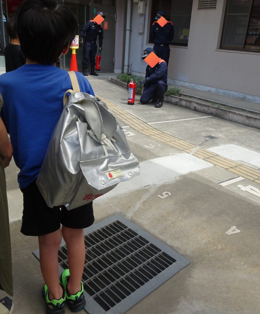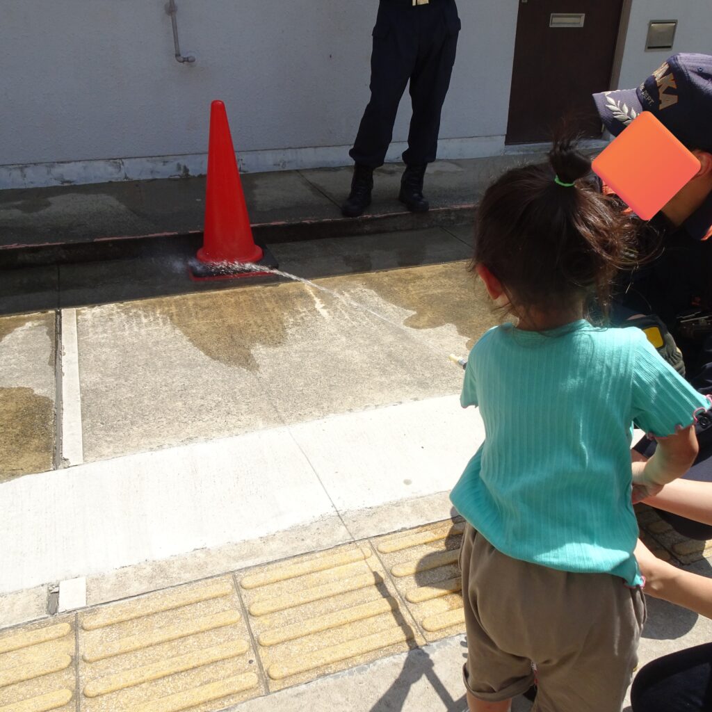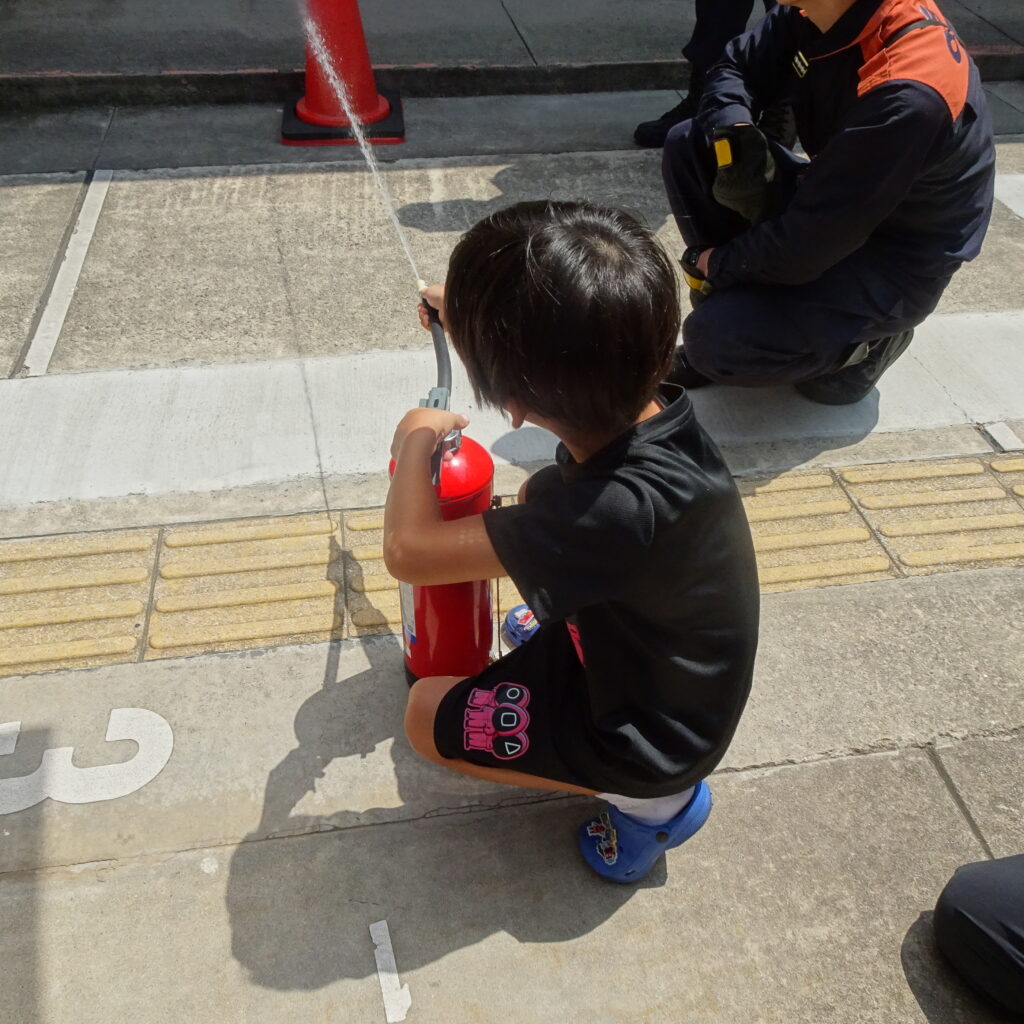 子どもたちにも優しく丁寧に消火器の使い方を教えていただき、