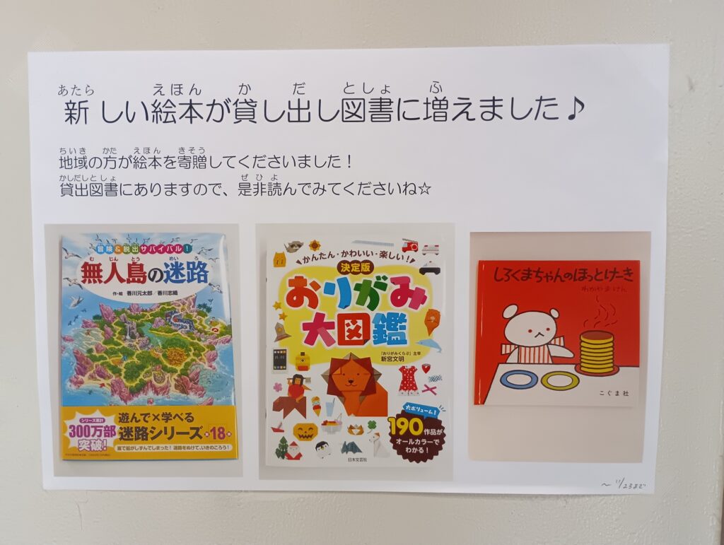 絵本を通してお母さんと子ども達にとって素敵な時間になるよう、大切に使わせていただきます。