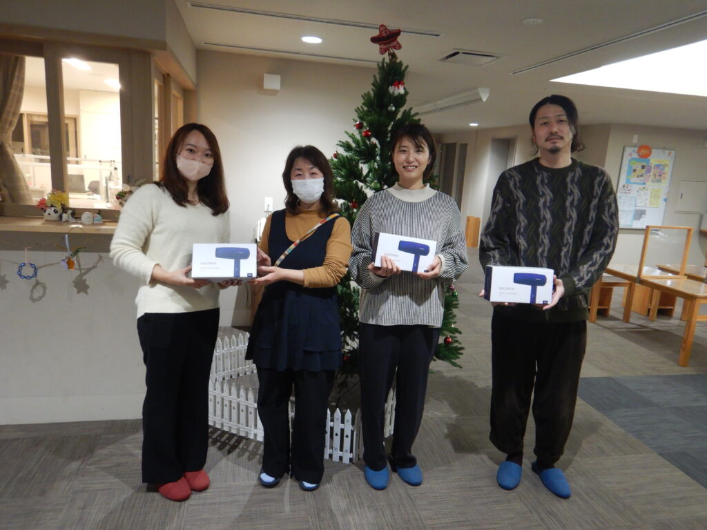 SALONIAのヘアードライヤーを寄附して頂いている、株式会社 I-ne様から3名の方が