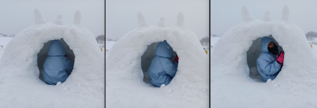 小さな子どもサイズのかまくらに…さらに雪を足してデコってオリジナルのかまくら完成❄️❄️❄️