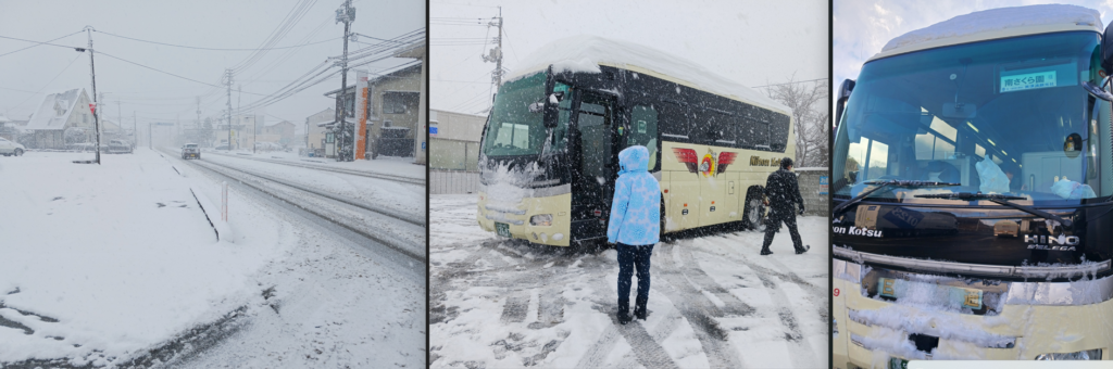 大阪に着いてもバスにはまだ雪が残っていました🤣