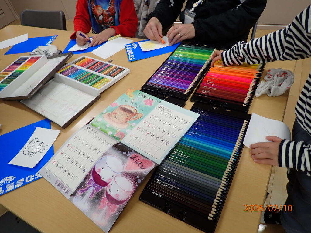 色鉛筆とパステルを使用した絵の描き方を教えていただき、