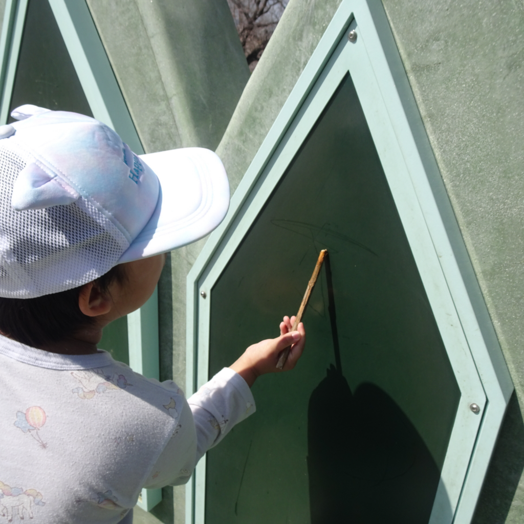 そのあとは水を使ってお絵描きをしたり、フリスビーで遊びました!