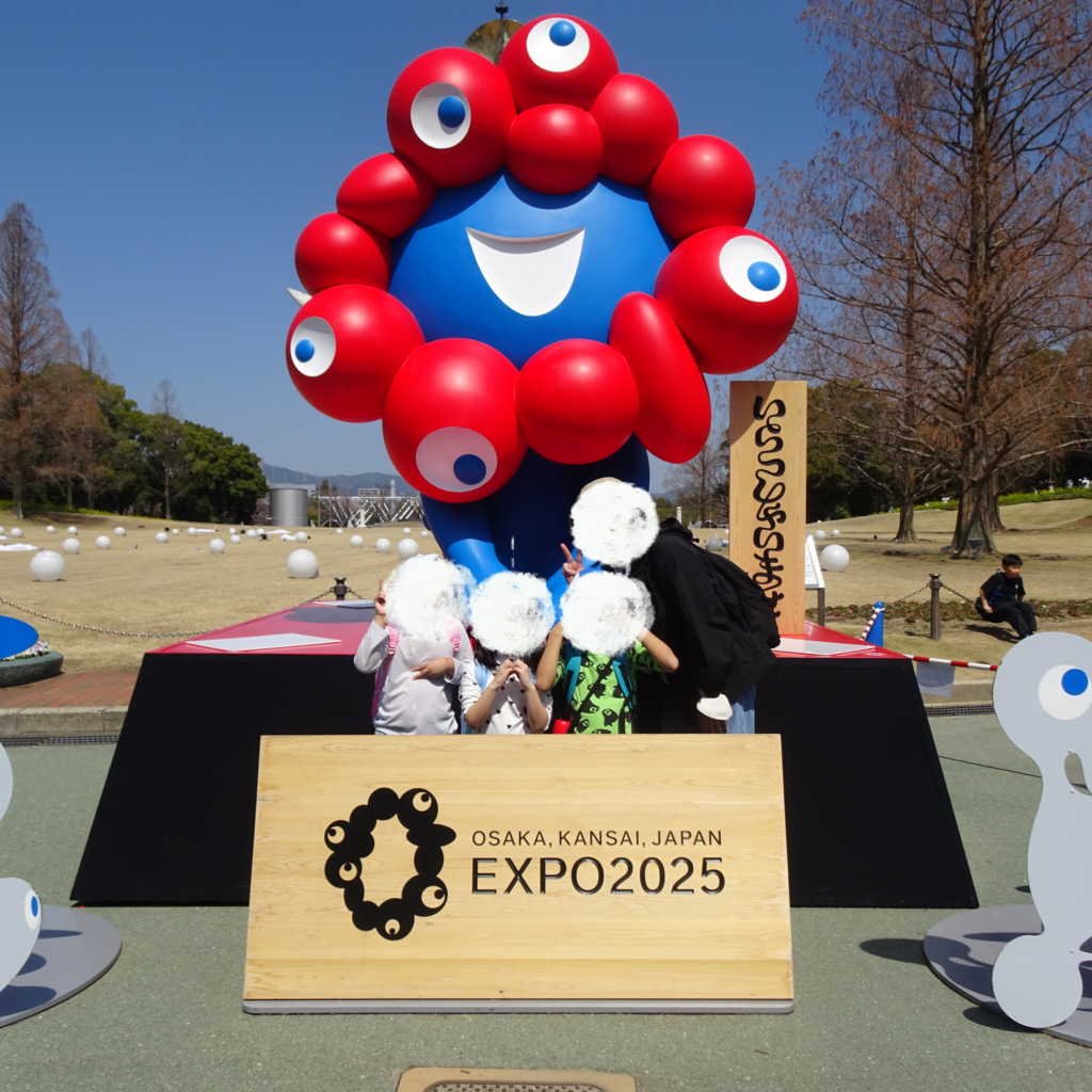 到着したら太陽の塔と記念撮影。ミャクミャクとも記念撮影ができました!