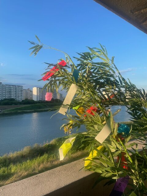 屋上へ行き七夕にちなんだレクリエーションをみんなで楽しみました。